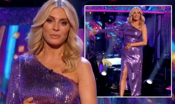 TESS DALY made a statement with a bold sparkling purple dress on this evening’s episode of Strictly Come Dancing – but some viewers couldn’t help but compare the colour to the show’s set.